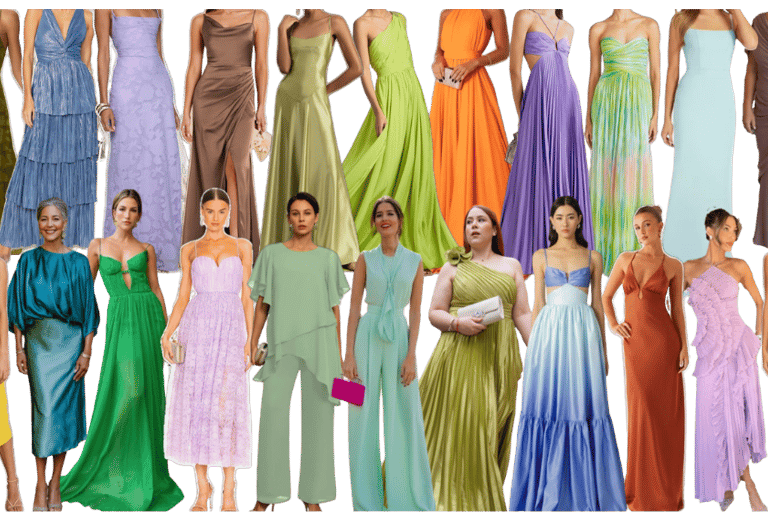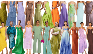 Vestidos largos o midi, o conjuntos con telas ligeras y frescas, en colores lisos.
